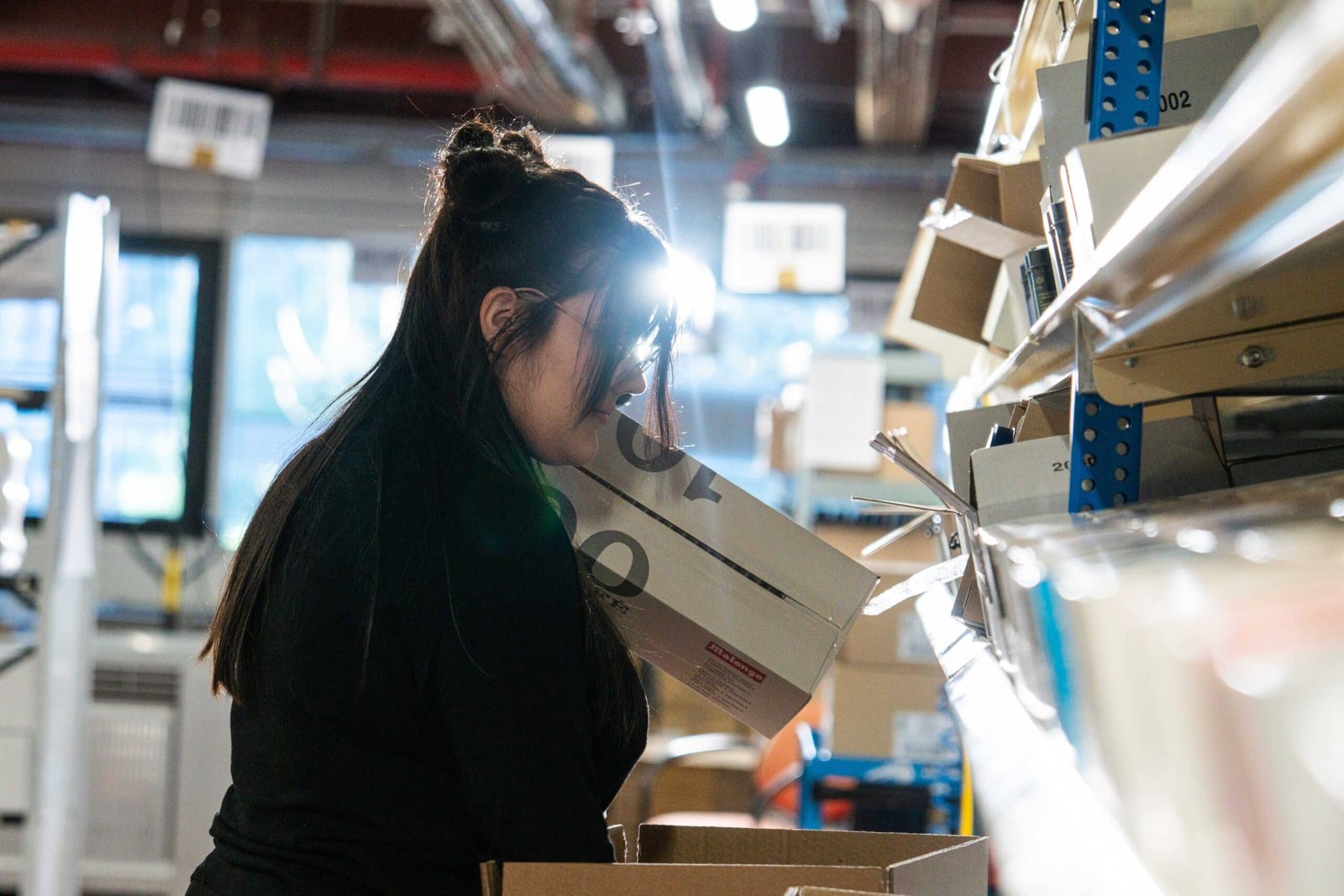Le parti pris de production était clair : tourner au cœur de l’entrepôt, sans décor artificiel. Florence est interviewée sur un tabouret dans l’atelier, micro-cravate discret, lumière industrielle travaillée en contre-jour. Les plans B-roll illustrent son propos — chariot élévateur, picking de pièces détachées, gestes du quotidien — et donnent à voir un environnement de travail concret, humain, loin des clichés du corporate lissé.